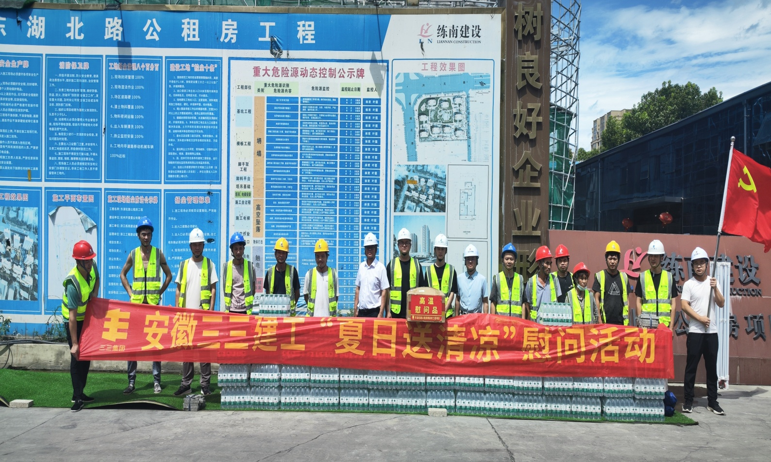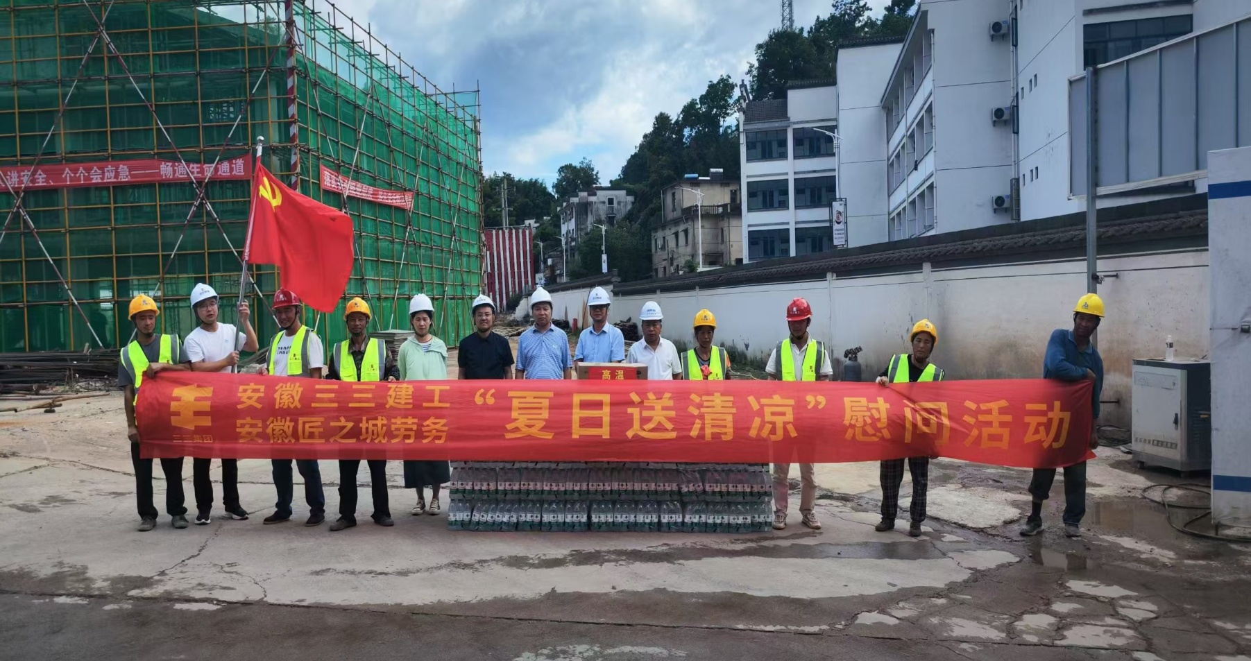 進(jìn)入七月以來,全國多地進(jìn)入“火爐”模式,持續(xù)的高溫天氣給施工一線工作人員帶來嚴(yán)峻的考驗(yàn)。為切實(shí)做好夏季防暑降溫工作,傳遞集團(tuán)公司對員工的關(guān)愛,營造和改善員工夏季生產(chǎn)生活條件,維護(hù)廣大員工的健康與安全。按照集團(tuán)董事會(huì)指示,自 7月15 日起,集團(tuán)工程管理中心聯(lián)合黨支部、工會(huì)、潤心勞務(wù)等正式開啟2024年度“夏日送清涼”慰問活動(dòng)。三三集團(tuán)常務(wù)副總裁、三三建工總經(jīng)理王利民、黨支部書記張思民、總工程師閆杰等領(lǐng)導(dǎo)分別帶隊(duì)奔赴集團(tuán)在省內(nèi)外的十余個(gè)在建項(xiàng)目,深入施工現(xiàn)場慰問在高溫下堅(jiān)守崗位的一線工作人員,并送上了藿香正氣水、仁丹、礦泉水等防暑降溫物品,以及集團(tuán)董事會(huì)對一線工作人員的關(guān)懷。